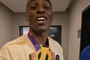 在感谢完陪伴自己自己尿检的队医之后,身着冠军夹克的法比奥终于走出了兴奋剂检测室,这时的时间是23点07分。虽然距离捧杯已经过去了2个多小时,但是安哥拉人依然难掩自己的激动情绪,他反复说着这样一句话:“我终于有冠军了,我的荣誉薄上终于从零变成1了,感谢大家,我等不及和他们一起庆祝了。”