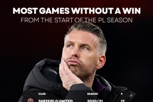 据媒体统计,狼队本赛季英超前16轮比赛不胜,差1场追平谢菲联2020-2021赛季创造的英超开局连续不胜纪录。狼队下场联赛将对阵布伦特福德。