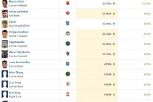 中超球员身价涨幅排名:维塔尔上涨150万欧居首,古尔芬克尔第二