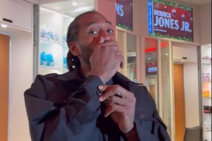赛后,莱昂纳德接受了记者采访。当被摄像机明亮的灯光照到时,他说道:“你在拍电影吗?把那烂玩意儿关掉。Shit。”