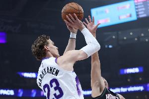 此役,马尔卡宁出战36分钟,投篮20中10,三分球9中2,罚球5中5,拿到27分8篮板1助攻的数据。