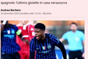 体育资讯12月25日讯 近日,《米兰体育报》谈到了国际米兰U19小将迪兰·萨拉特,他们表示球员在加盟球队后迅速展现出全面的实力。