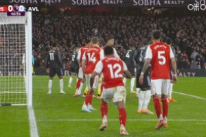 比赛第47分钟,阿森纳右路角球,大马丁没能拿到,足球接触加布里埃尔后入网!