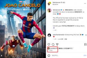 随后,目前效力于利雅得胜利的前巴萨球员菲利克斯为该消息进行了点赞,他和坎塞洛也是葡萄牙国家队的队友。