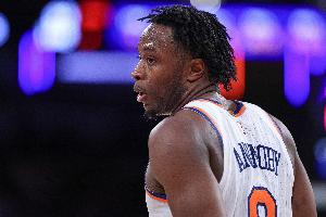 上半场,尼克斯三分铁到没眼看,他们合计19投1中,命中数甚至比威少(三分4中2)还少1个。